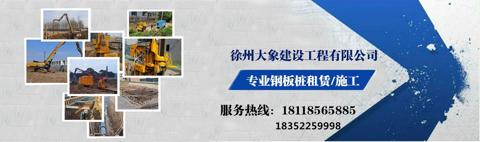 徐州大象建設工程有限公司是一家專業(yè)從事拉森鋼板樁施工及租賃、打樁機施工及租賃、靜壓植樁機施工租賃及設計施工方案、二手鋼板樁轉讓、鋼板樁工程、光伏樁施工、市政工程、水利圍堰工程、土石方工程、地基工程施工等服務為一體的企業(yè)。